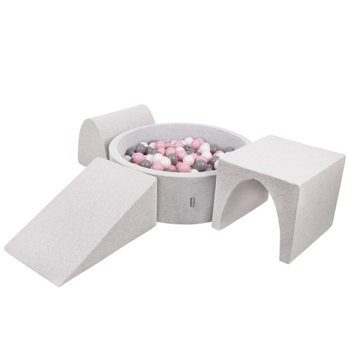 KiddyMoon Aire De Jeux en Mousse avec Rond Piscine à Balles pour Enfants, gris clair: blanc/gris/rose poudré, Piscine (200 Balles) + Version 2