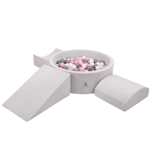 KiddyMoon Aire De Jeux en Mousse avec Rond Piscine à Balles pour Enfants, gris clair: blanc/gris/rose poudré, Piscine (300 Balles) + Version 4