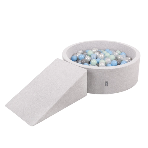KiddyMoon Aire De Jeux en Mousse avec Rond Piscine à Balles pour Enfants, gris clair: perle/gris/transparent/babyblue/menthe, Piscine (100 Balles)+ Pente