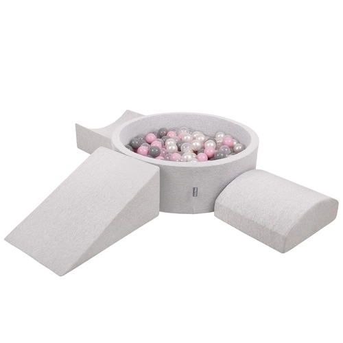 KiddyMoon Aire De Jeux en Mousse avec Rond Piscine à Balles pour Enfants, gris clair: perle/gris/transparent/rose poudré, Piscine (200 Balles) + Version 4