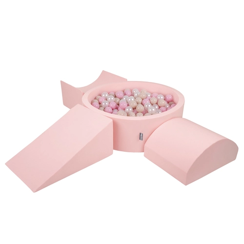 KiddyMoon Aire De Jeux en Mousse avec Rond Piscine à Balles pour Enfants, rose: beige pastel/rose poudré/perle, Piscine (300 Balles) + Version 4
