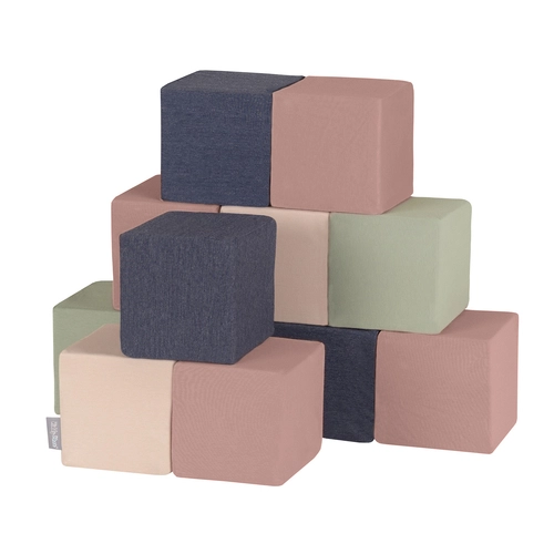 KiddyMoon blocs mous pour bébé cubes de construction en mousse, cubes: bruyère/bleu foncé/beige/sage, 12 Pieces
