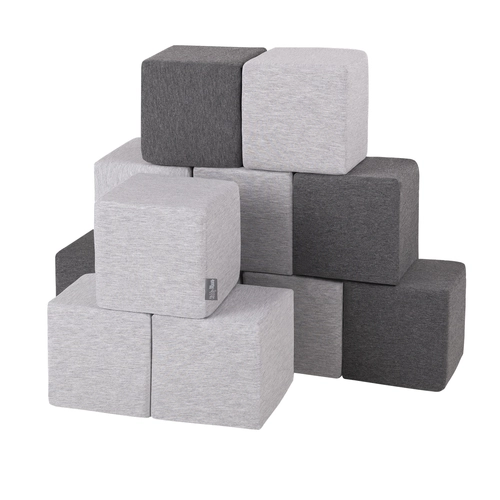 KiddyMoon blocs mous pour bébé cubes de construction en mousse, cubes: gris clair/gris foncé, 12 Pieces