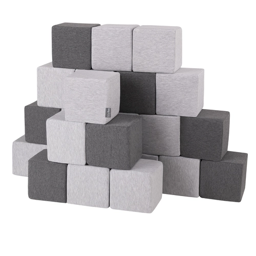 KiddyMoon blocs mous pour bébé cubes de construction en mousse, cubes: gris clair/gris foncé, 24 Pieces