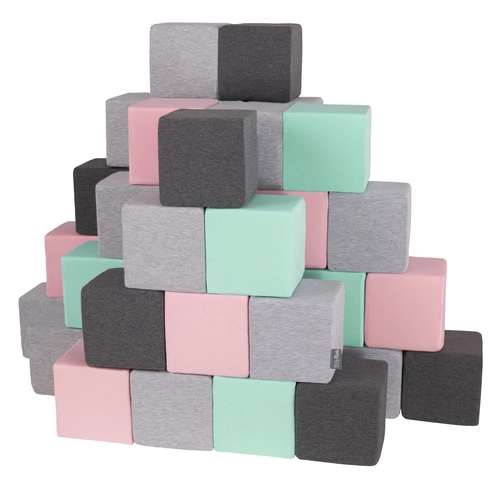 KiddyMoon blocs mous pour bébé cubes de construction en mousse, cubes: gris clair/gris foncé/rose/menthe, 48 Pieces