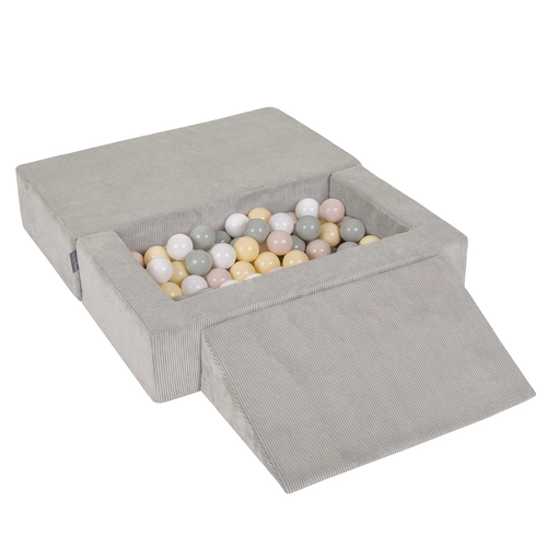 KiddyMoon Canapé en Mousse pour Enfants avec Balles et Pente Parfait Pour la Chambre D'enfant Léger Modulable Confortable Sécurisé Idéal pour Jouer et Se Détendre, gris clair: beige pastel/vert-gris/jaune pastel/blanc, Canapé/Pente + 100 Balles