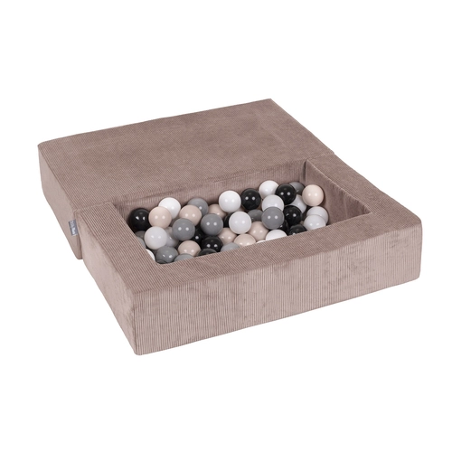 KiddyMoon Canapé en Mousse pour Enfants avec Balles Pour chambre d'enfant Léger Modulable Confortable Housse Amovible Parfait pour Jouer Lire et Se Détendre, beige foncé: beige pastel/gris/blanc/noir, Canapé + 100 Balles