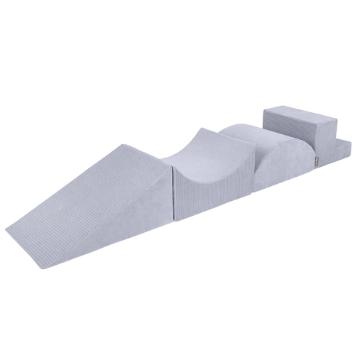 • [Aire De Jeux Modulable] : Composée de 4 éléments en mousse – rampe, semi-rouleau, pente, marches – cette aire favorise l’exploration motrice et le développement créatif.