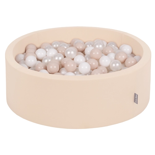 KiddyMoon Piscine à Balles ∅ 7Cm pour Bébé Rond Fabriqué En UE, beige: beige pastel/blanc/perle, 90x30cm/300 balles