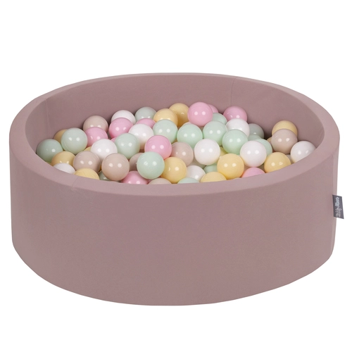 KiddyMoon Piscine à Balles ∅ 7Cm pour Bébé Rond Fabriqué En UE, Béruée: beige pastel/jaune pastel/blanc/menthe/rose poudre, 90x30cm/300 balles