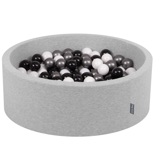 KiddyMoon Piscine à Balles ∅ 7Cm pour Bébé Rond Fabriqué En UE, gris clair:blanc/noir/argenté, 90x30cm/300 balles