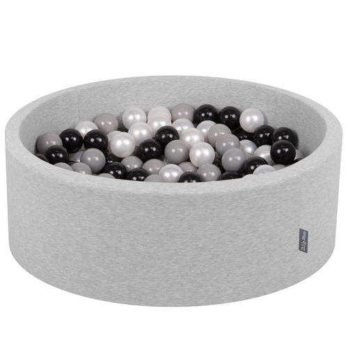 KiddyMoon Piscine à Balles ∅ 7Cm pour Bébé Rond Fabriqué En UE, gris clair:noir/gris/perle, 90x30cm/200 balles