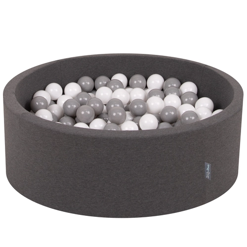 KiddyMoon Piscine à Balles ∅ 7Cm pour Bébé Rond Fabriqué En UE, gris foncé:blanc/gris, 90x30cm/200 balles