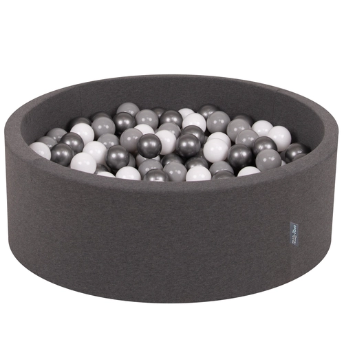 KiddyMoon Piscine à Balles ∅ 7Cm pour Bébé Rond Fabriqué En UE, gris foncé:blanc/gris/argenté, 90x30cm/300 balles