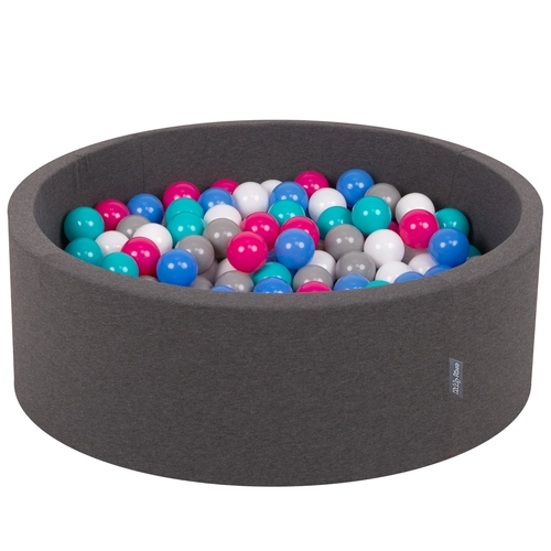 KiddyMoon Piscine à Balles ∅ 7Cm pour Bébé Rond Fabriqué En UE, gris foncé:blanc/gris/bleu/rose foncé/turq. clair, 90x30cm/300 balles