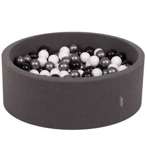 KiddyMoon Piscine à Balles ∅ 7Cm pour Bébé Rond Fabriqué En UE, gris foncé: blanc/noir/argenté, 90x30cm/300 balles