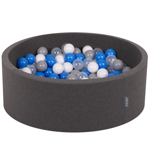 KiddyMoon Piscine à Balles ∅ 7Cm pour Bébé Rond Fabriqué En UE, gris foncé: gris/blanc/bleu/transparent, 90x30cm/300 balles