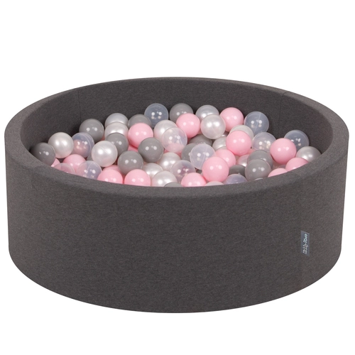 KiddyMoon Piscine à Balles ∅ 7Cm pour Bébé Rond Fabriqué En UE, gris foncé:perle/gris/transparent/rose clair, 90x30cm/300 balles