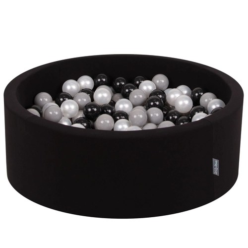 KiddyMoon Piscine à Balles ∅ 7Cm pour Bébé Rond Fabriqué En UE, noir: noir/gris/perle, 90x30cm/300 balles