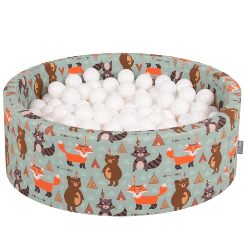 KiddyMoon Piscine à Balles ∅ 7Cm pour Bébé Rond Fabriqué En UE, renard-vert: blanc, 90x30cm/300 balles