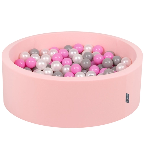 KiddyMoon Piscine à Balles ∅ 7Cm pour Bébé Rond Fabriqué En UE, rose: perle/gris/rose, 90x30cm/300 balles