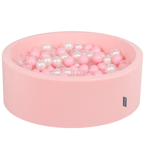 KiddyMoon Piscine à Balles ∅ 7Cm pour Bébé Rond Fabriqué En UE, rose: rose poudre/perle/transparent, 90x30cm/200 balles