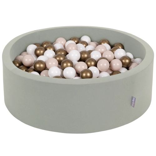 KiddyMoon Piscine à Balles ∅ 7Cm pour Bébé Rond Fabriqué En UE, sauge : beige pastel/blanc/or, 90x30cm/200 balles
