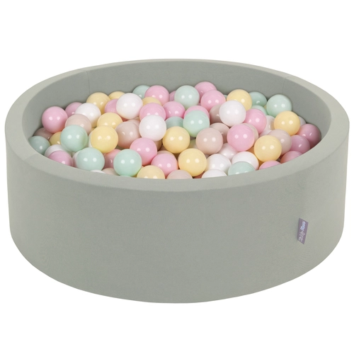 KiddyMoon Piscine à Balles ∅ 7Cm pour Bébé Rond Fabriqué En UE, sauge : beige pastel/jaune pastel/blanc/menthe/rose poudré, 90x30cm/200 balles