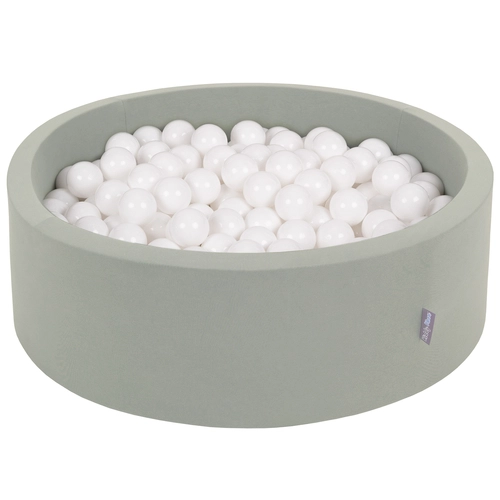 KiddyMoon Piscine à Balles ∅ 7Cm pour Bébé Rond Fabriqué En UE, sauge : blanc, 90x30cm/300 balles