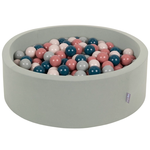 KiddyMoon Piscine à Balles ∅ 7Cm pour Bébé Rond Fabriqué En UE, sauge : turquoise foncé/beige pastel/vert de gris/saumon, 90x30cm/300 balles