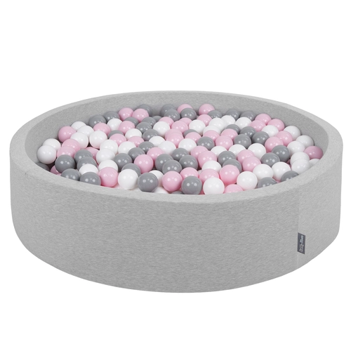 KiddyMoon Piscine À Balles Grande Rond pour Bébé, Fabriqué en UE, gris clair: blanc-gris-rose poudré, 120x30cm/300 balles
