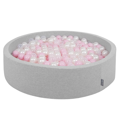 KiddyMoon Piscine À Balles Grande Rond pour Bébé, Fabriqué en UE, gris clair:rose poudré-perle-transparent, 120x30cm/600 balles