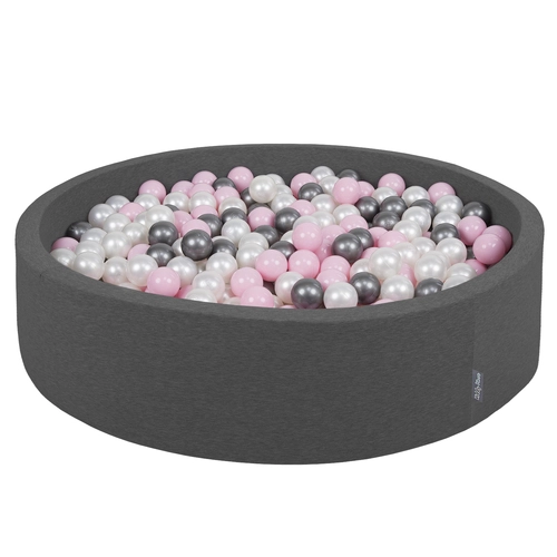 KiddyMoon Piscine À Balles Grande Rond pour Bébé, Fabriqué en UE, gris foncé: perle-rose poudré-argent, 120x30cm/1000 balles