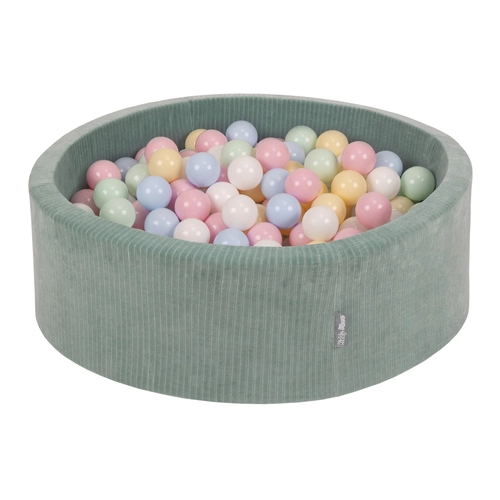 KiddyMoon Piscine À Balles pour Enfants Mousse Côtelé Pour Motricité Bébé, Vert : bleu pastel/jaune pastel/blanc/menthe/rose poudré, 90x30cm/100 balles