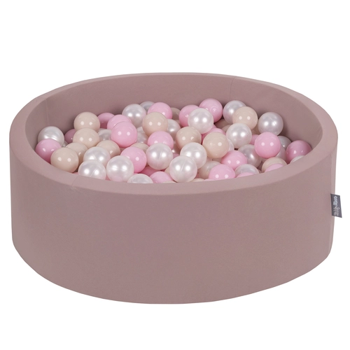 KiddyMoon piscine à balles ronde en mousse pour bébé et enfant, bassin sensoriel intérieur, housse lavable, inclus balles sécurisées, Béruée: beige pastel/rose poudre/perle, 90x30cm/300 balles