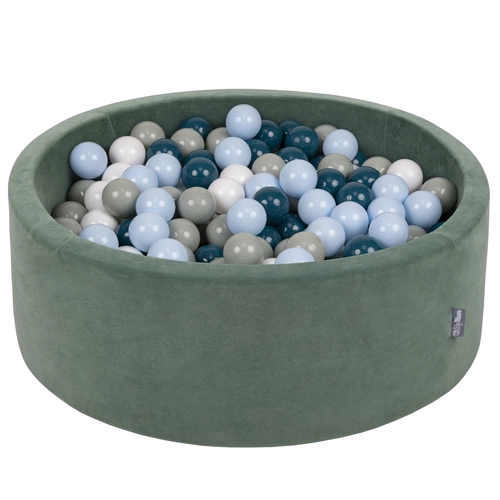 KiddyMoon Velours Piscine à Balles ∅7Cm pour Bébé Rond Fabriqué en EU, vert forêt: turquoise foncé/gris de vert/bleu pastel/blanc, 90x30cm/200 balles