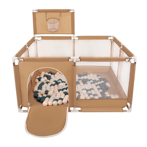 parc bébé avec balles plastiques aire de jeu pliable basket, beige : turquoise foncé/beige pastel/perle, 200 balles