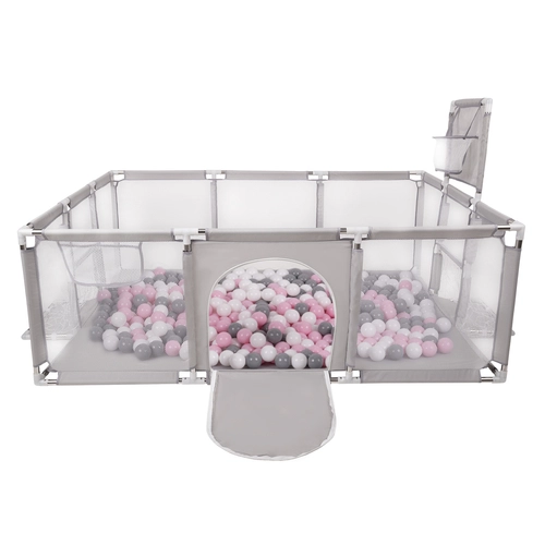 Parc Bébé avec Balles Plastiques Aire De Jeu Pliable Basket Football, Gris: blanc/gris/rose poudré, 400 balles
