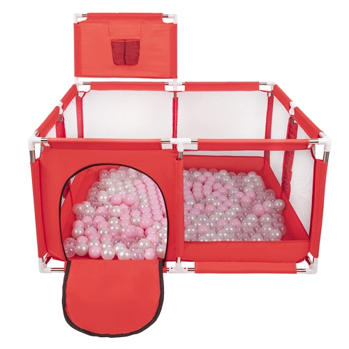parc bébé avec balles plastiques aire de jeu pliable basket, Rouge: rose poudré/perle/transparent, 200 balles