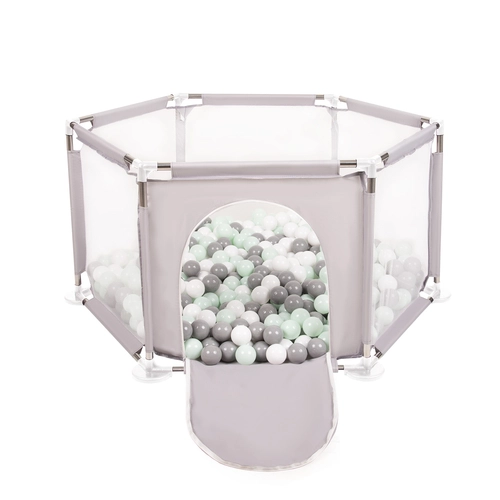 parc bébé hexagonal pliable avec balles plastiques, Gris:blanc/gris/mentha, 900 balles