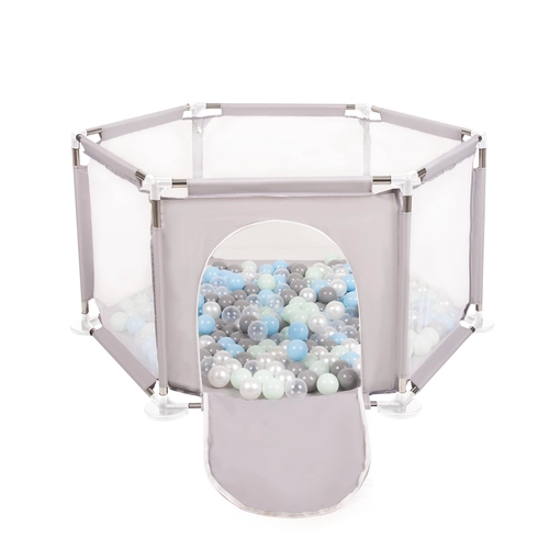 parc bébé hexagonal pliable avec balles plastiques, Gris:perle/gris/transparent/babyblue/mentha, 200 balles
