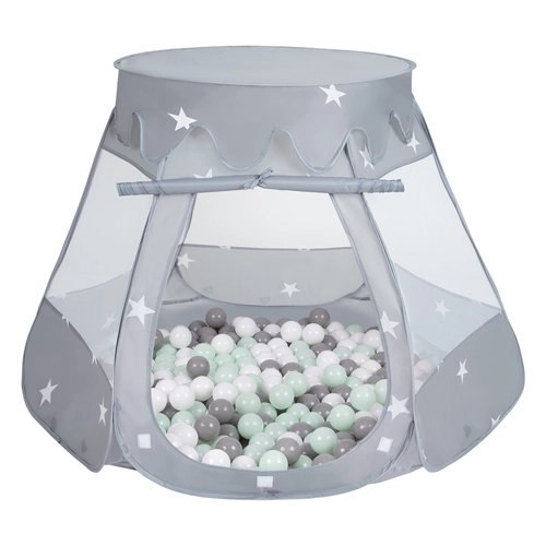 Tente Château Pour Enfants Tente de Jeu Avec Balles Colorées Jouet Cabane Pop-up Château Facile À Monter Maison de Jeu Pour Intérieur et Extérieur, gris:blanco/gris/menthe, 105x90cm/300 balles