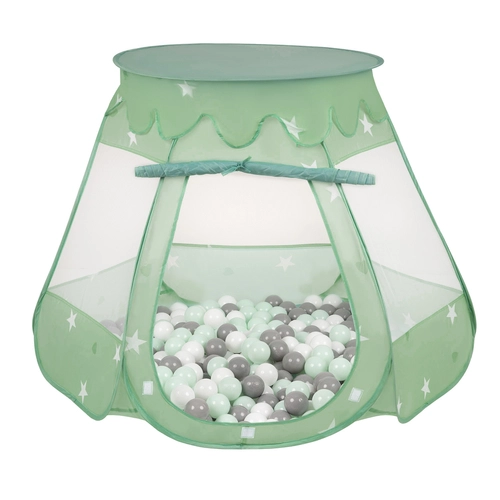 Tente Château Pour Enfants Tente de Jeu Avec Balles Colorées Jouet Cabane Pop-up Château Facile À Monter Maison de Jeu Pour Intérieur et Extérieur, menthe:blanc/gris/menthe, 105x90cm/600 balles
