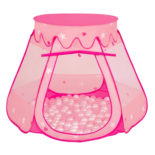 Tente Château Pour Enfants Tente de Jeu Avec Balles Colorées Jouet Cabane Pop-up Château Facile À Monter Maison de Jeu Pour Intérieur et Extérieur, rose: perle-transparent, 105x90cm/600 balles