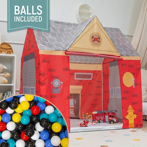 Tente De Jeu Pompier pour Enfants Forme De Pavillon Pour Bébés Design Pliable Tente Pop-Up Réaliste Inspiré Utilisation Intérieure Et Extérieure, rouge-gris: noir/blanc/bleu/rouge/jaune/turquoise, 200 Balles