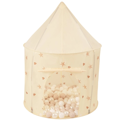Tente de Jeu Pour Enfants Château Maison de Jeu En Forme De Pavillon De Jeu Avec Balles Pliable Tente Pop-Up Enfant Motifs D'Étoiles Et De Cœurs, beige clair: beige pastel/blanc/perle, 200 balles