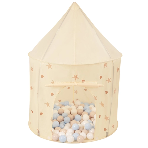 Tente de Jeu Pour Enfants Château Maison de Jeu En Forme De Pavillon De Jeu Avec Balles Pliable Tente Pop-Up Enfant Motifs D'Étoiles Et De Cœurs, beige clair: beige pastel/bleu pastel/blanc, 400 balles