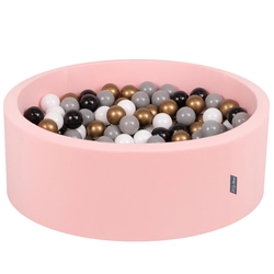 KiddyMoon Piscine À Balles Grande Rond pour Bébé, Fabriqué en UE, rose: blanc-gris-rose poudré, 120x30cm/1000 balles