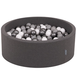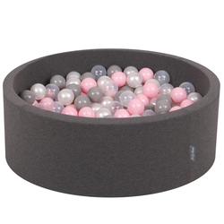 KiddyMoon Piscine à Balles ∅ 7Cm pour Bébé Rond Fabriqué En UE, gris foncé:perle/gris/transparent/rose clair, 90x30cm/200 balles
