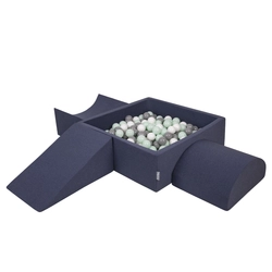 KiddyMoon Aire De Jeux en Mousse avec Carré Piscine À Balles pour Enfants, bleu foncé:babyblue/bleu/perle, Piscine (200 Balles) + Version 4